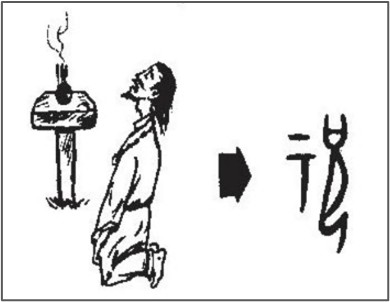 “祝”是由“示”和“兄”两部分组成,“示”部意义十分明显,代表一位会启示的神名。按《说文解字》字典: